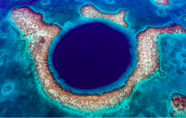 As the name might imply, Belize’s legendary Blue Hole is a giant marine sinkhole about 43 mi/70 km off the mainland. It measures 1,043 ft/318 m across and 407 ft/124 m deep. Most people I’d spoken with about the diving experience said it was a “one-and-done” kind of deal; do it once, and you can check it off the list and move on. I was surprised and a bit disappointed to hear it described this way, but was nonetheless still excited to see it for myself.